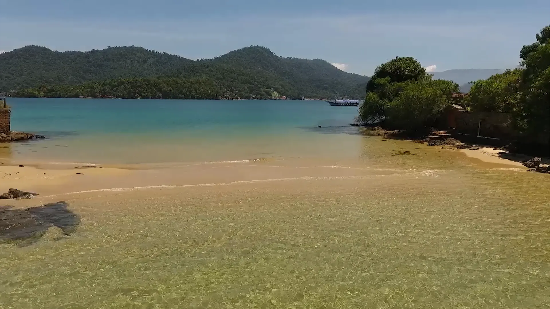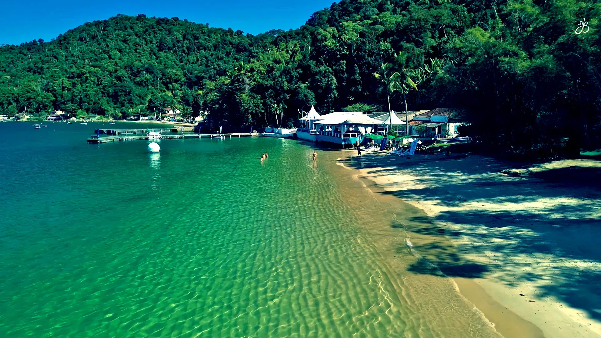 E que beleza! A areia, de tão branca e fina, parece acariciar os pés a cada passo. A água, de um verde-esmeralda translúcido e quase sem ondas, convida a flutuar por horas, completamente entregue à tranquilidade de uma piscina natural, emoldurada pelo verde intenso da Mata Atlântica.