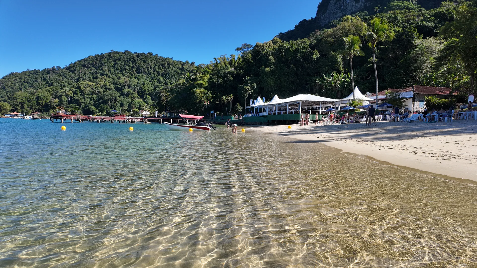 É impossível falar desta praia sem sentir o cheiro do peixe fresco sendo preparado no restaurante que, há décadas, é o coração pulsante do lugar. O Bar do Luiz não é apenas na praia; em muitos sentidos, ele é a praia. É aqui que a cultura caiçara se apresenta em sua forma mais deliciosa. A fama do seu pastel de camarão é tão grande que atrai barcos de toda a baía, que chegam em busca desse sabor único e da hospitalidade familiar. Almoçar aqui, com os pés quase na areia, é mais que uma refeição, é um ritual.